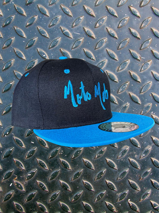 6 Inch Panel Snap Back Cap - Black with Leather Moto Mob Patch