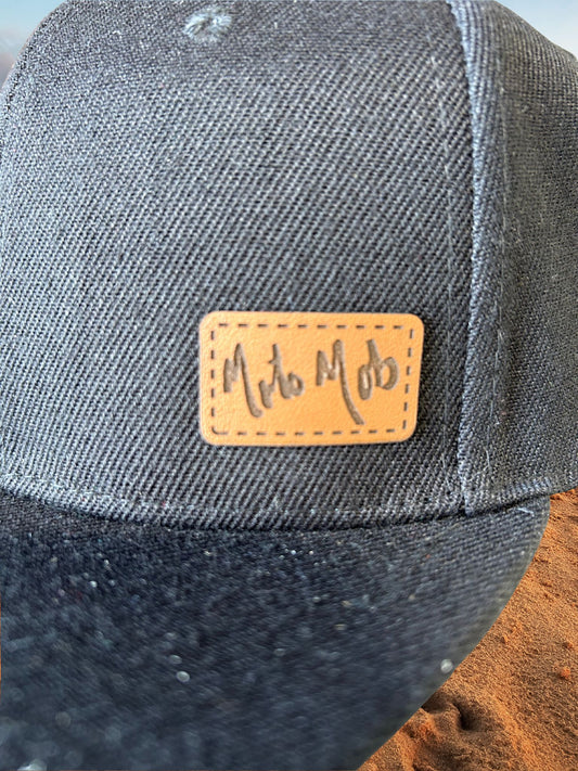 6 Inch Panel Snap Back Cap - Black with Leather Moto Mob Patch