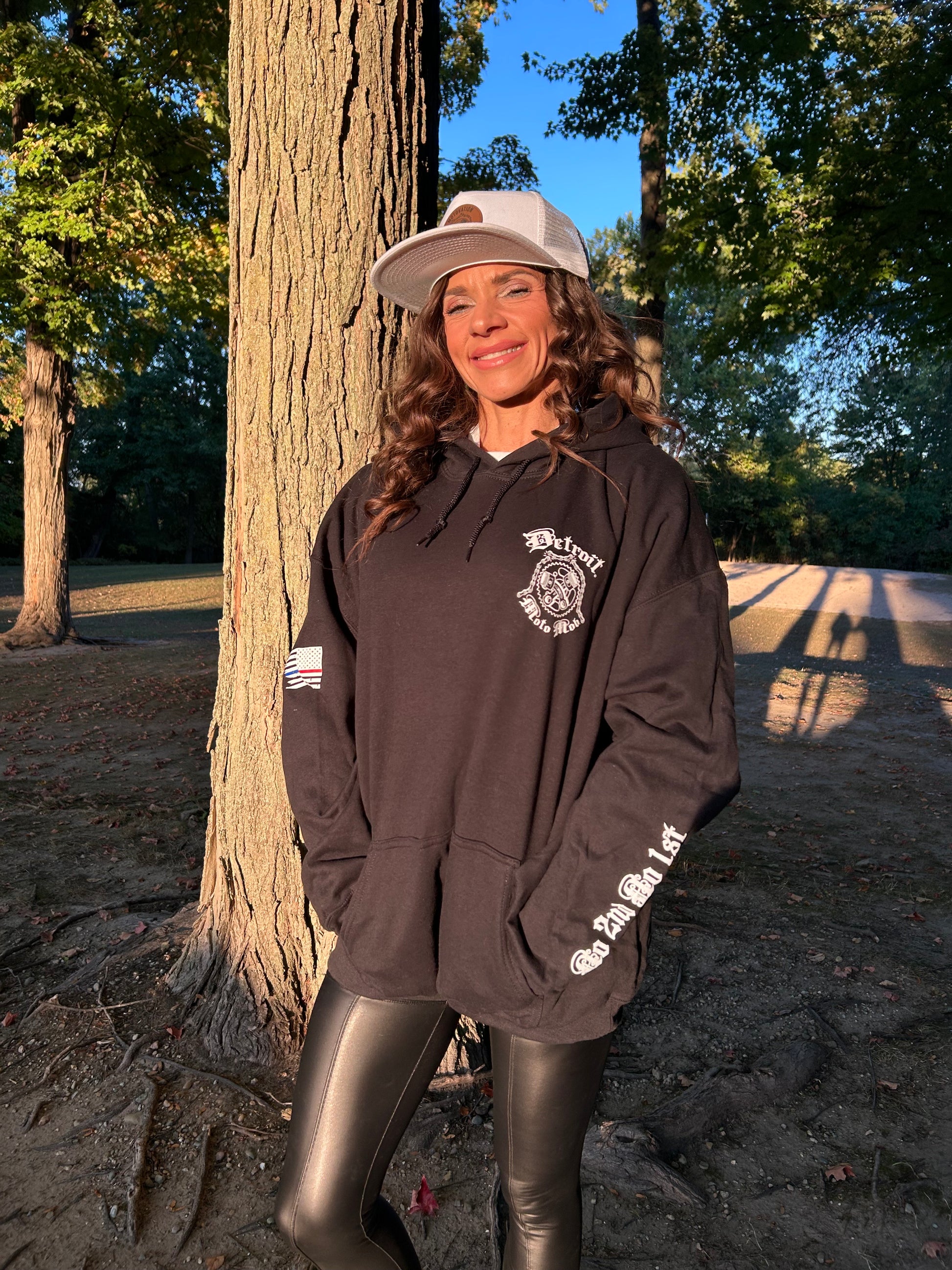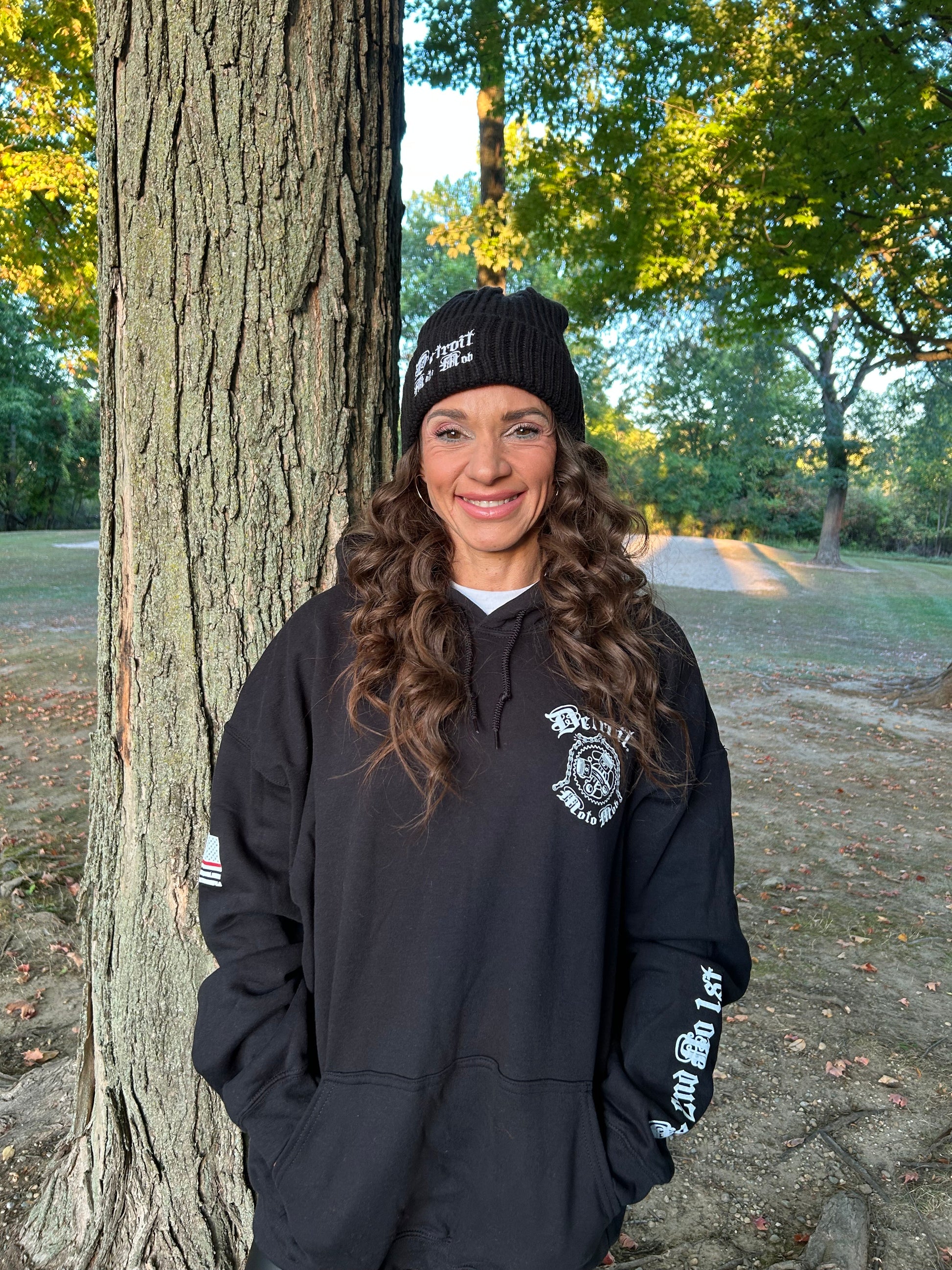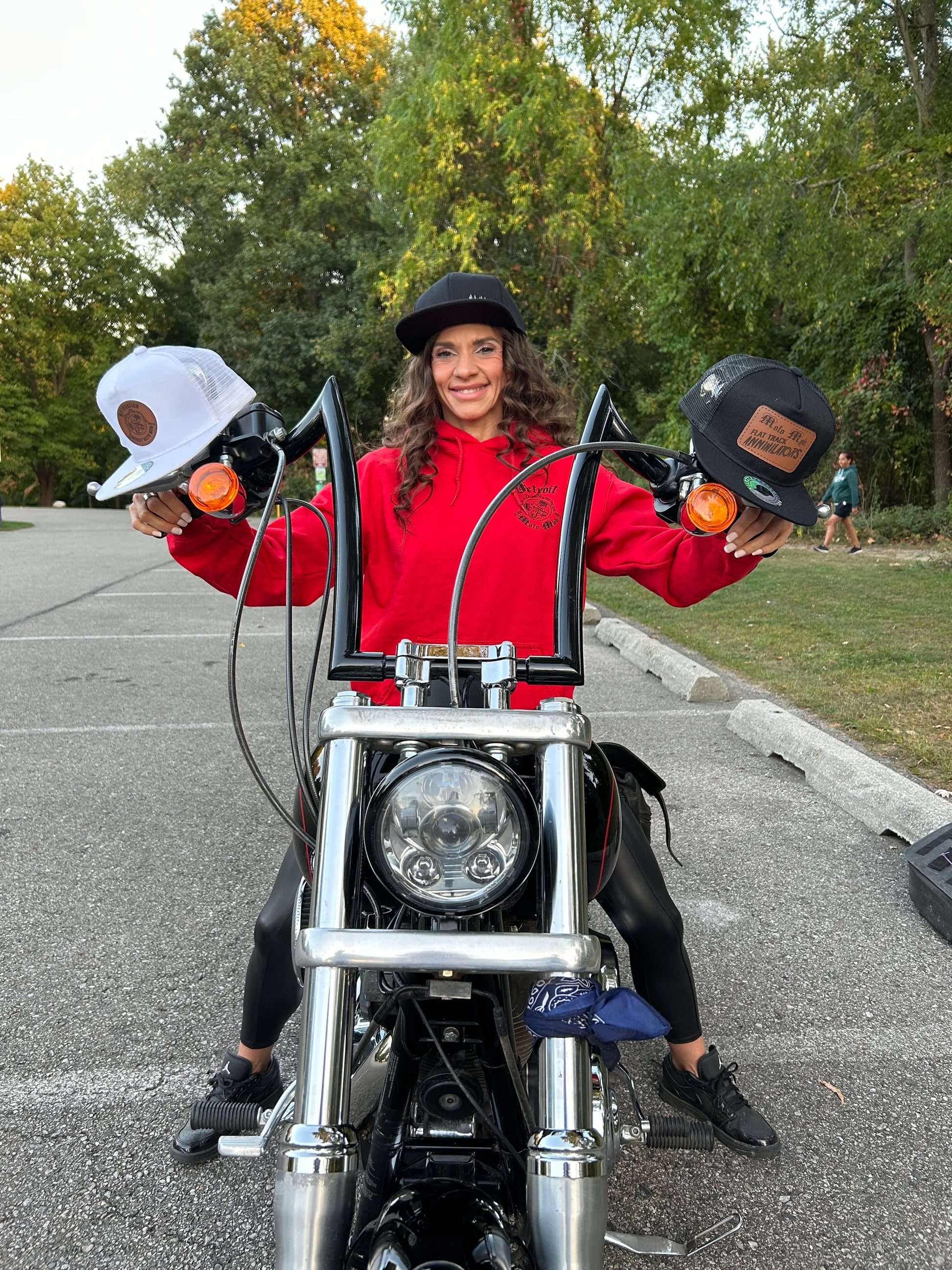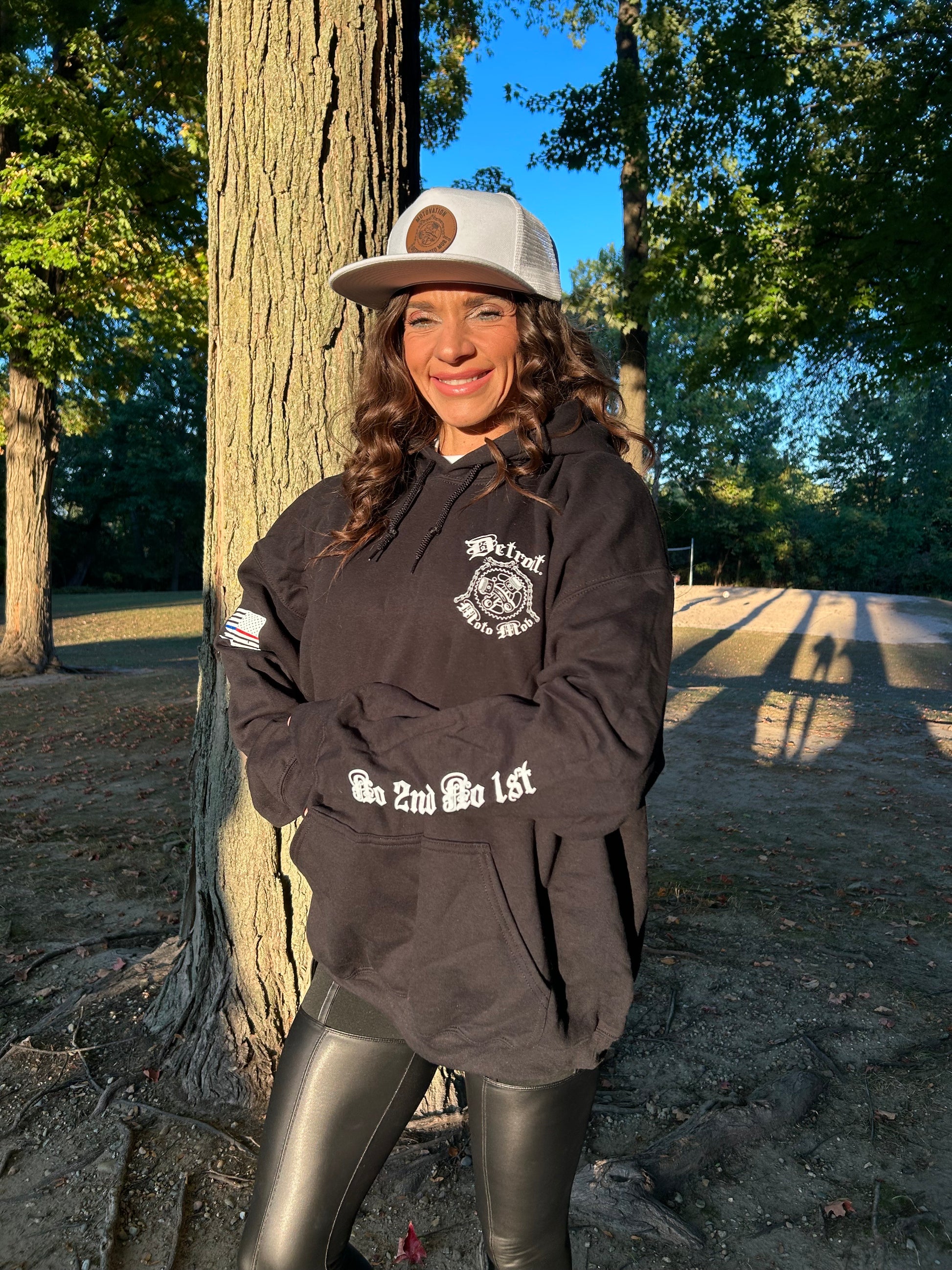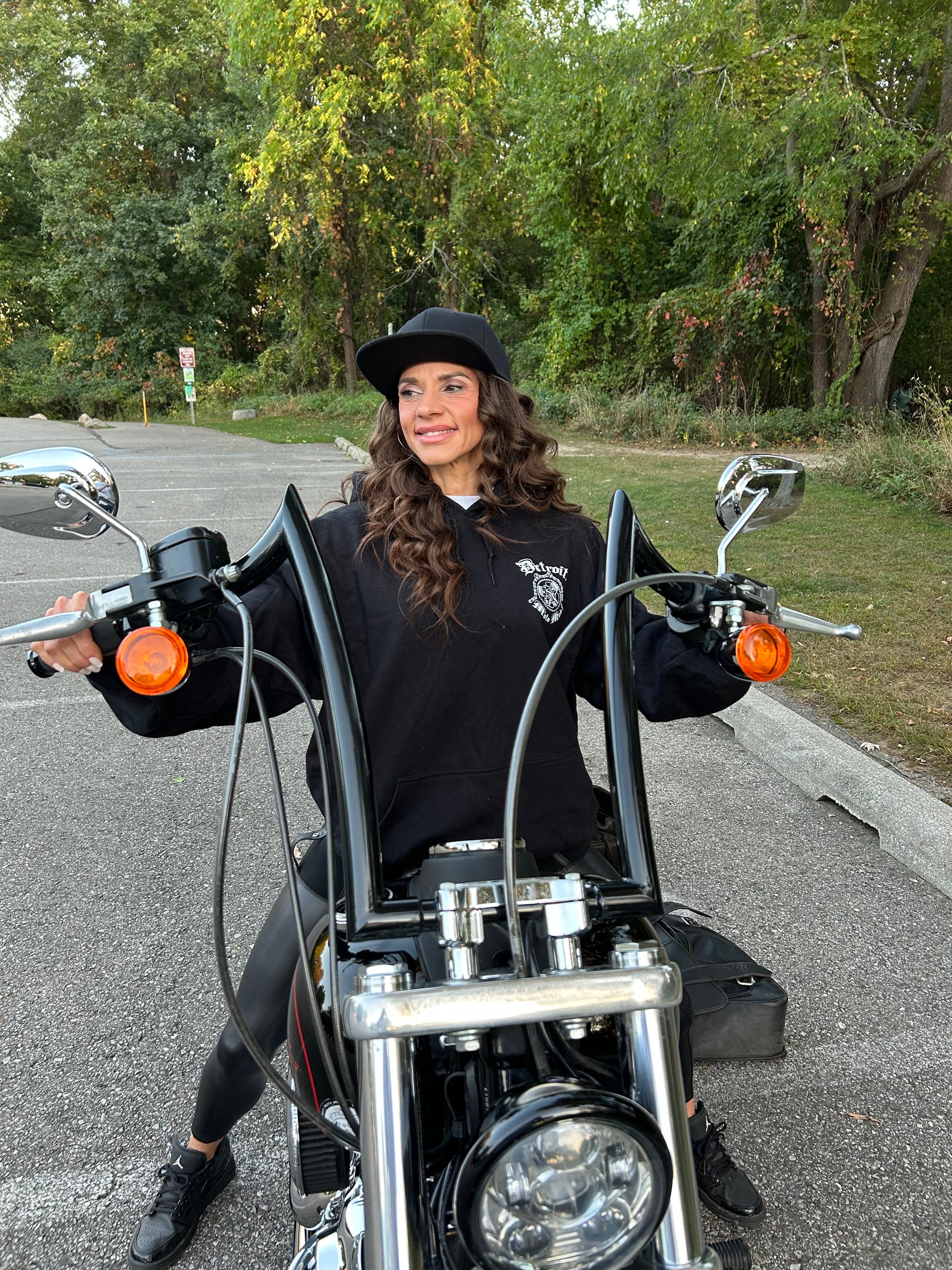 This all-black trucker hat from Detroit Moto Mob features a bold Moto Vation leather patch, combining rugged style with street-ready attitude. Its snap back design ensures a perfect fit, making it the ultimate accessory for those who live life on the edge. Durable and distinctive, this cap adds a fierce finishing touch to any outfit.